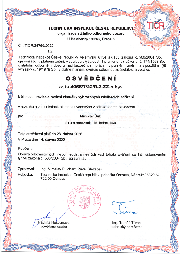 Revize, zkoušky a technické prohlídky: