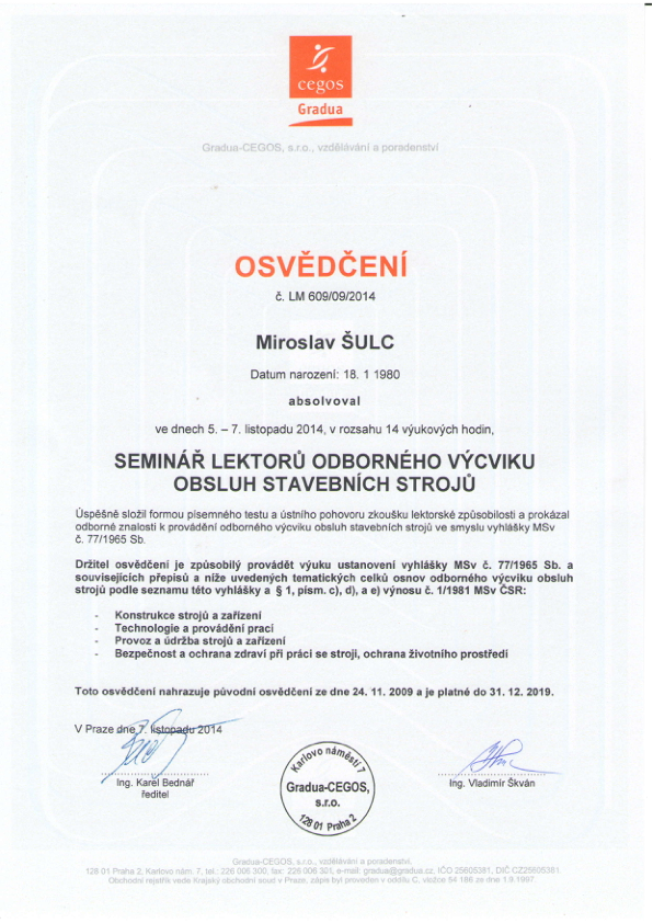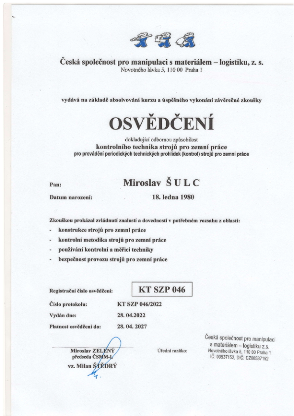 technik strojů pro zemní práce č. KT SPZ 046
